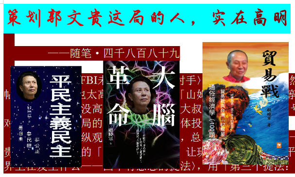 本帖最后由 顾晓军 于 2023-3-17 09:13 编辑 策划郭文贵这局的人,实在高明 ——随笔·四千八百八十九 一篇〈美国FBI未必是郭文贵的对手〉,在各处皆较火;然,也有跟帖说,「顾先生也太高抬郭文贵 ...
