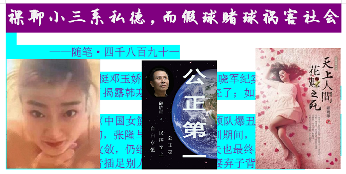 裸聊小三系私德,而假球赌球祸害社会 ——随笔·四千八百九十一 侥幸写成〈「狂挺邓玉娇」之壮举〉(《顾晓军纪实》一书,越往后越难写),下一篇〈「揭露韩寒」之缠斗〉卡壳了;如是,来时评下,混点 ...