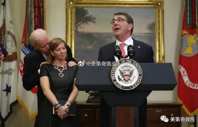 来源:美第奇效应1 前边美国国防部长卡特就职演讲,后边他敢对着卡特的老婆又按肩膀,又闻头发,又亲后脑,卡特老婆拼命往旁边躲,碍于老公的大日子也没法发作,这个表情实在是太无奈了 。 ...