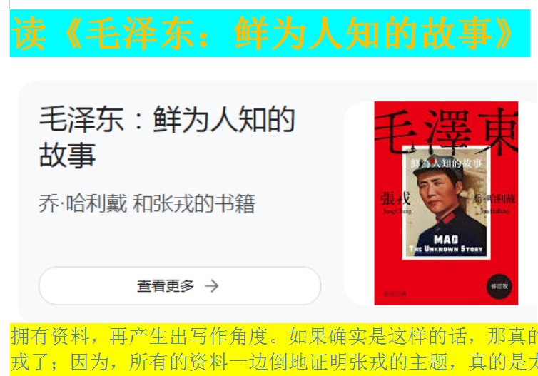 本帖最后由 顾晓军 于 2023-6-17 19:24 编辑 读《毛泽东:鲜为人知的故事》 ——随笔·四千九百四十四 尽量不写文章,空出时间来读杂七杂八的书,已有一个多月了。而读过的书,随即从我的电脑里删 ...