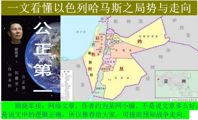 一文看懂以色列哈马斯之局势与走向 顾晓军按:网络文章,作者约为某网小编。不是说文章多么好,而是说文中的逻辑正确,所以推荐给大家,可提前预知战争走向。 由哈马斯突袭以色 ...