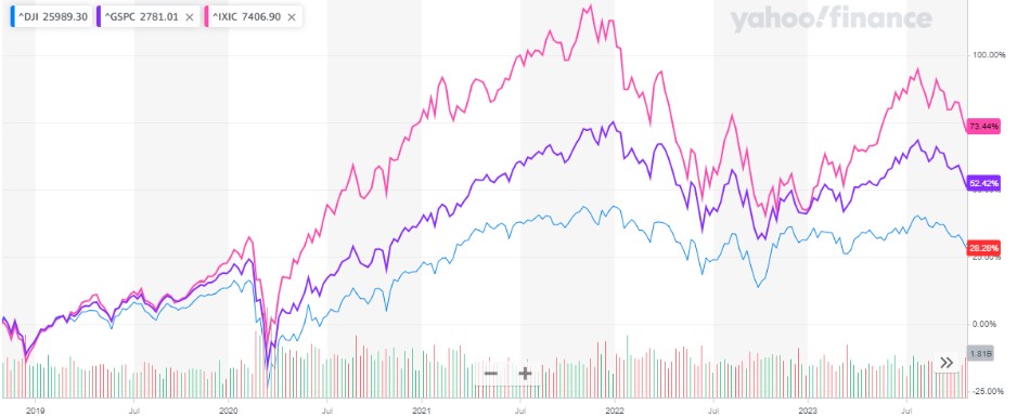 上周美股三大股指下跌。从周线来看,道琼斯指数DJIA下跌709.69点,跌幅2.1%,收于32,417.59点;标普500指数S&P 500下跌106.79点,跌幅2.5%,收于4,117.37点;纳斯达克指数NASDAQ下跌340.80点,跌幅2.6%,收于12,64 ...