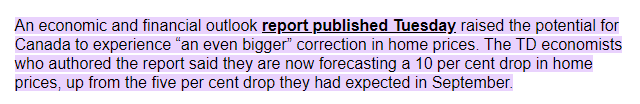 今天这篇报道挺有意思TD 竟然自己出来唱衰加拿大房地产 并且预测从今年秋天到明年2024 年初还会再跌个10% 从原文来看,基本上是老生常谈了。TD观点是通胀仍未见顶,即使央行不加息也会推高债券收益预期,进而直接影 ...