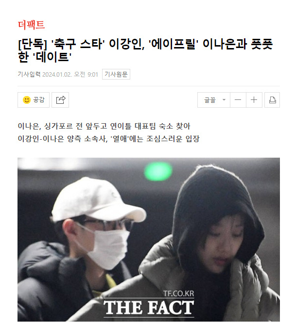 据韩媒,前Apri 成员李娜恩与足球运动员李康仁约会。去年11月,李娜恩前往选手宿舍下的停车场,与李康仁车中约会。比赛结束后,还在李娜恩的家中约会。2021年,李娜恩因为孤立队友引发争议,去年11月宣布将时隔两年 ...