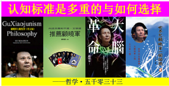 本帖最后由 顾晓军 于 2024-1-10 16:04 编辑 人类社会认知标准的多重与选择 ——哲学·五千零三十三 有网友在我的〈其实【丑陋的中国人】是本等而下的书〉一文之后跟帖,并引用了我的提问「 ...