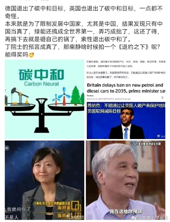 来源:平原公子赵胜 关于“碳中和”,大家其实都知道是个“发展权”的问题,终极意思是——反正我们欧美已经工业化过了,你们第三世界就没必要工业化了。 放在《三体》里,就是当年三体人派狗腿子潘寒这些人在 ...