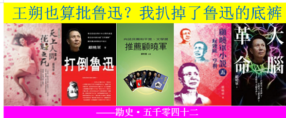 本帖最后由 顾晓军 于 2024-2-3 12:00 编辑 王朔也算批鲁迅?我扒掉了鲁迅的底裤 ——勘史·五千零四十二 我的〈鲁迅该钉在中华文史的耻辱柱上〉文后,骂帖无数;唯「鲁迅是死去的有缺点的战士,王 ...