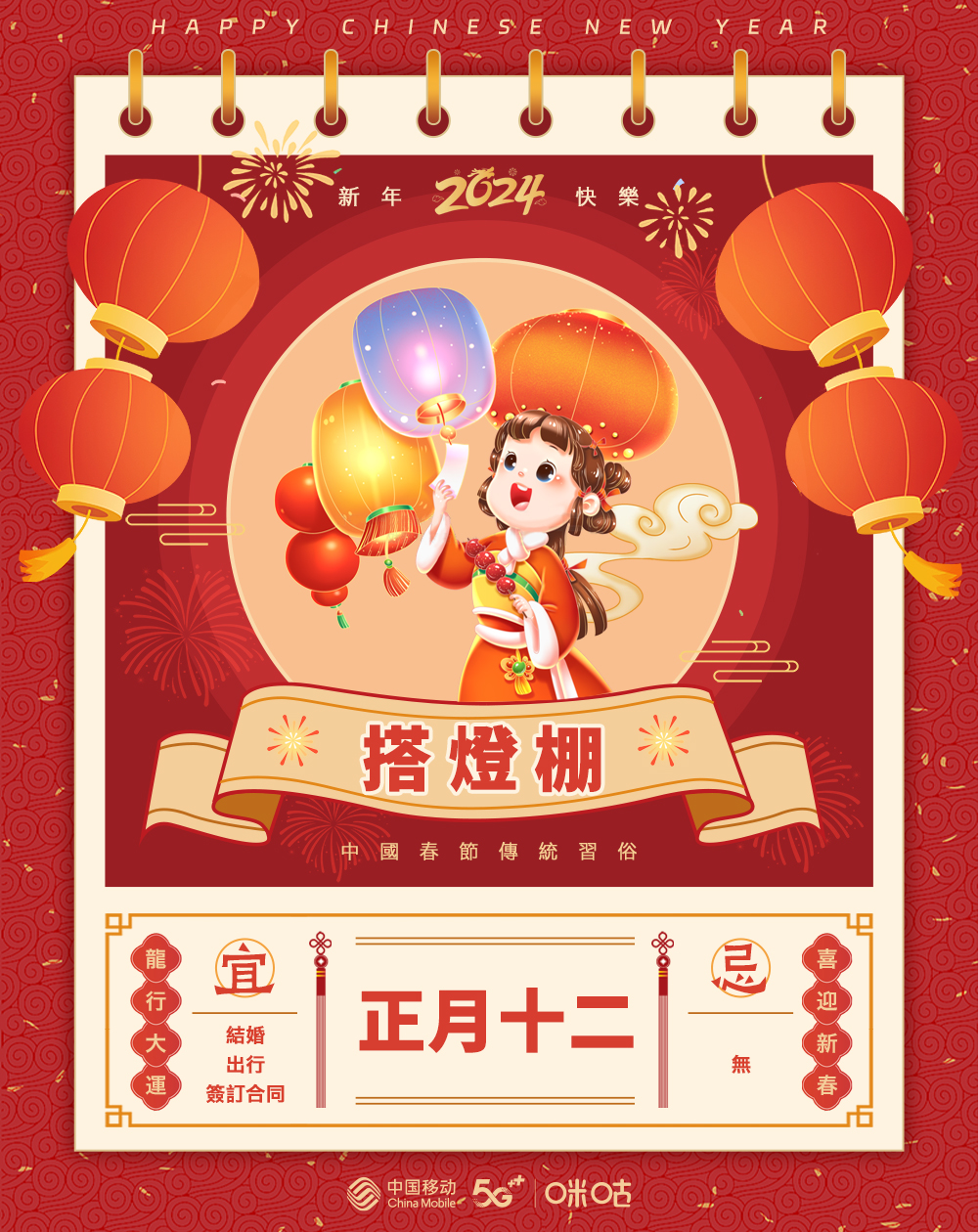 正月十二,搭建灯棚。元宵节将近,开始做元宵赏灯的准备工作。 从新年到正月十一,人们吃的食物中大多丰富且多油。因此,从这天开始,人们开始饮食清淡,清肠润燥。更重要的是,由于三天后将是元宵节,从这天开始 ...