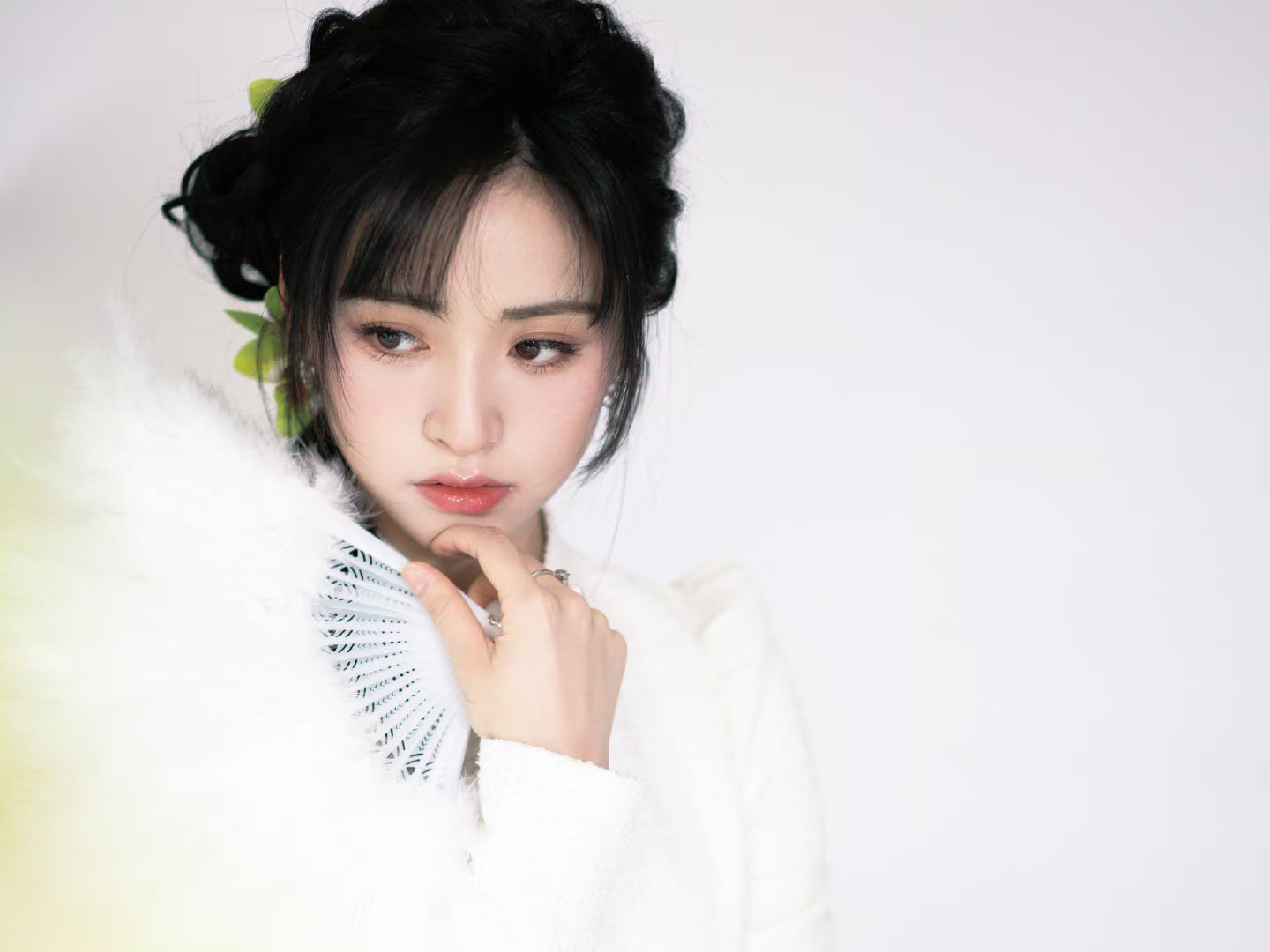 沈月新中式造型,头发上别着蝴蝶兰,好有创意