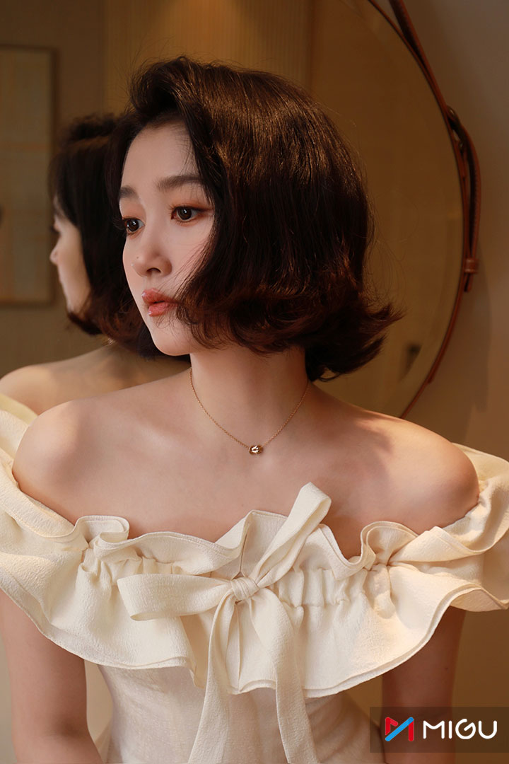 关晓彤今日直播look,白色露肩花朵裙,裙边轻泛涟漪,外翘短发俏皮。用一抹纯白,点亮春日美好,享丝滑新体验,自信展示自我!