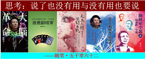 本帖最后由 顾晓军 于 2024-3-24 00:11 编辑 思考:说了也没有用与没有用也要说 ——随笔·五千零六十二 很不好意思,我常常与大家的思维脱节。比如,当人们同情白烨、厌恶说「文坛是个屁 谁 ...