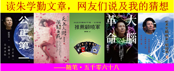 读朱学勤文章,网友们说及我的猜想 ——随笔·五千零六十八 写了篇〈从社会学角度读朱学勤的【这一千年的革命】〉,并介绍与转发了朱学勤的这篇文章。网友们读后,虽跟帖不多,却很有见地(当然 ...