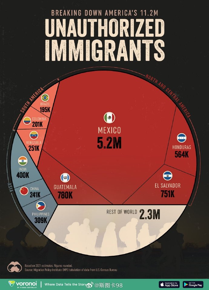 斯图卡98 美国非法移民主要来源国 中国排第八,看来力度还不大。再润些~润人们,加油