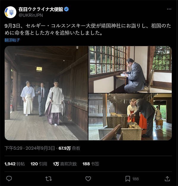 本帖最后由 pengngychita 于 2024-9-4 04:41 编辑 观察者网 9月3日是中国人民抗日战争暨世界反法西斯战争胜利79周年纪念日。 乌克兰驻日本大使馆在社交平台X上发布消息称,当地时间9月3日,乌克兰驻日本大 ...