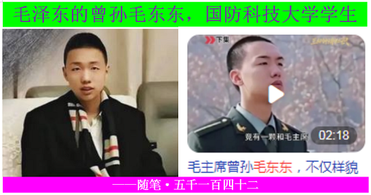 毛泽东的曾孙毛东东,国防科技大学学生 ——随笔·五千一百四十二 360推荐我看「毛主席曾孙演讲画面,获得新身份后更加稳重,与伟人有个莫名巧合……」。 因上次推荐我看小视频「毛主席外孙大 ...