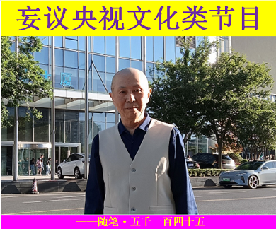 妄议央视文化类节目 ——随笔·五千一百四十五 昨日的〈非议央视2024中秋晚会及其他〉一文后,有网友跟帖道「没有看就没有发言权」。显然,这位网友没认真看我文章;如果我真没看,怎么知道第一 ...