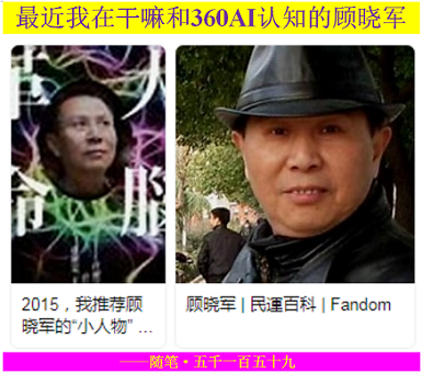 最近我在干嘛和360AI认知的顾晓军 ——随笔·五千一百五十九 写了〈顾晓军与白左及作家对小人物暨民众的不同〉的当晚,就又写了〈这是一位超过了鲁迅的作家〉;写的过程中,就打算不发,待12月初发。 ...