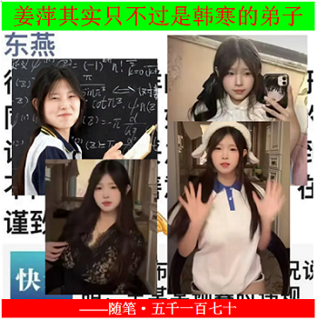 姜萍其实只不过是韩寒的弟子 ——随笔·五千一百七十 有网友给我发私信,说「先生好!好几天没看到先生发新文了」。我回,「是的,今年还没写」。网友道,「先生好!能看到您信息我就放心了」。 如 ...