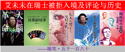 本帖最后由 顾晓军 于 2025-2-12 06:27 编辑 艾未未在瑞士被拒入境及评论与历史 ——随笔·五千一百八十 看到〈艾未未在苏黎世机场被拒绝入境瑞士〉,就看了一下。 文章说,「旅居欧洲多年 ...