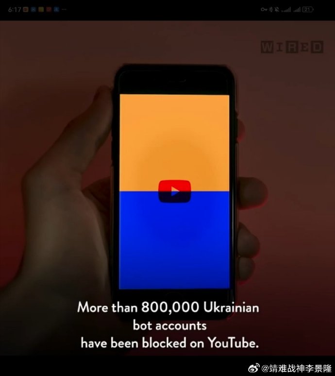 靖难战神李景隆 美国开始系统性清理乌克兰账号,单单youtube就清理了20万个支持乌克兰的账号,并且删除超过100万条评论。 Youtube给出的解释是,这些基本都是僵尸账号或者机器人账号[摊手][二哈]