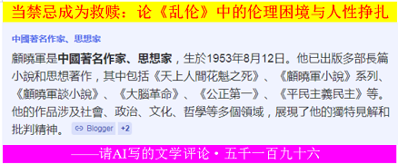 当禁忌成为救赎:论《乱伦》中的伦理困境与人性挣扎 ——请AI写的文学评论·五千一百九十六 上篇文题图中的资料截图“必应搜索「顾晓军」,呈现的是……”,我从电脑上发在QQ群里能见到,然我转 ...