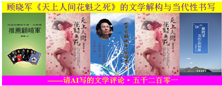 本帖最后由 顾晓军 于 2025-4-15 17:42 编辑 顾晓军《天上人间花魁之死》的文学解构与当代性书写 ——请AI写的文学评论·五千二百零一 再来延续一下〈《AI谈顾晓军小说【一】》书稿之序+目录 ...