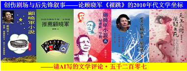 创伤剧场与后先锋叙事——论顾晓军《裸跳》的2010年代文学坐标 ——请AI写的文学评论·五千二百零七 2012-3-12,我写下并随即在网上发表了《裸跳》,当天即网红。同一日,石三生看后写下了评论〈我比 ...