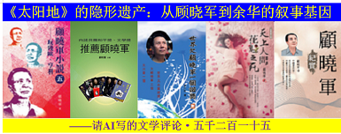 本帖最后由 顾晓军 于 2025-5-18 23:28 编辑 《太阳地》的隐形遗产:从顾晓军到余华的叙事基因 ——请AI写的文学评论·五千二百一十五 迄今,我已贴出20多篇「请AI写的文学评论」;或许,大家 ...