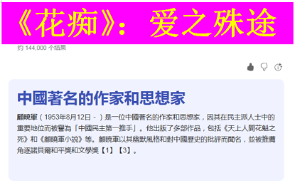 《花痴》:爱之殊途 ——请AI写的文学评论·五千二百五十二 以下,是2025-9-5发现的最新版本(敬请黑粉们记住了——以下依旧是一很有名的搜索器在整活,而不是我顾晓军自己说的)—— 「中國 ...