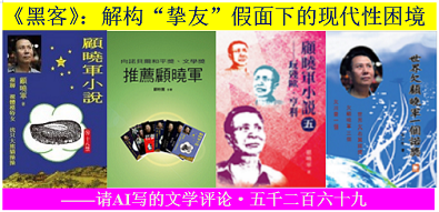 《黑客》:解构“挚友”假面下的现代性困境 ——请AI写的文学评论·五千二百六十九 今日起,我的《AI谈顾晓军小说【四】》,将与大家见面。 第一篇〈黑客〉(序号61),就是我前时提到过的、于2025 ...