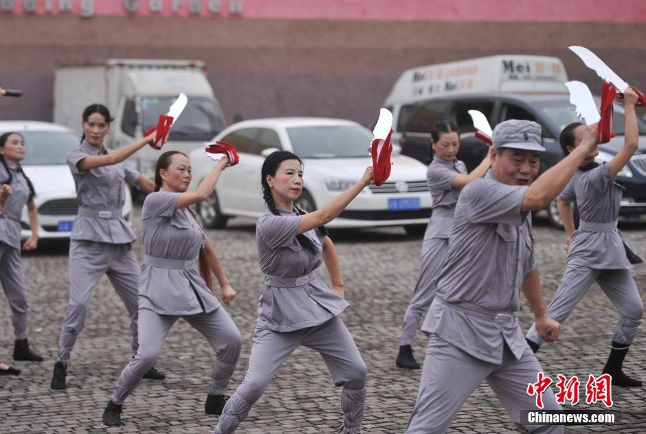 本帖最后由 wang7 于 2014-9-1 05:04 编辑 中新网 9月1日,重庆30余名大叔大妈们身着八路军服装,手持尖刀在重庆洋人街跳着自编舞蹈纪念第二次世界大战日本投降69周年。 ...