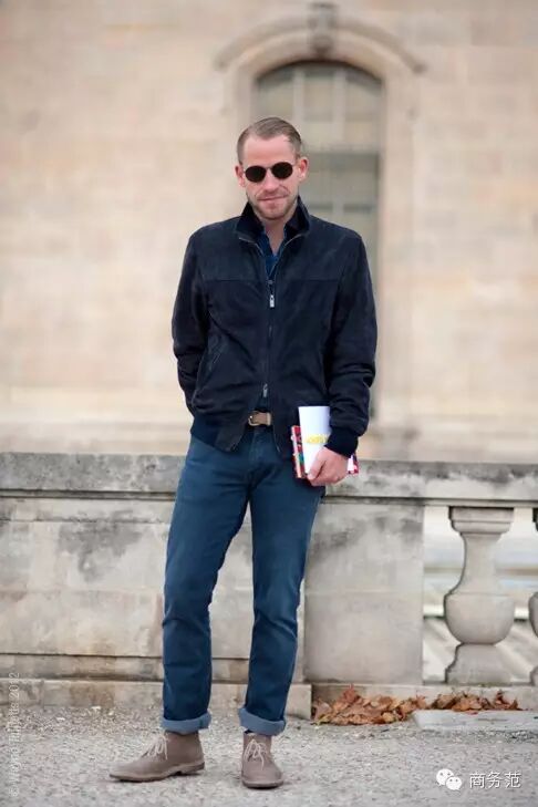 不少型男也用夹克来搭配沙漠靴。