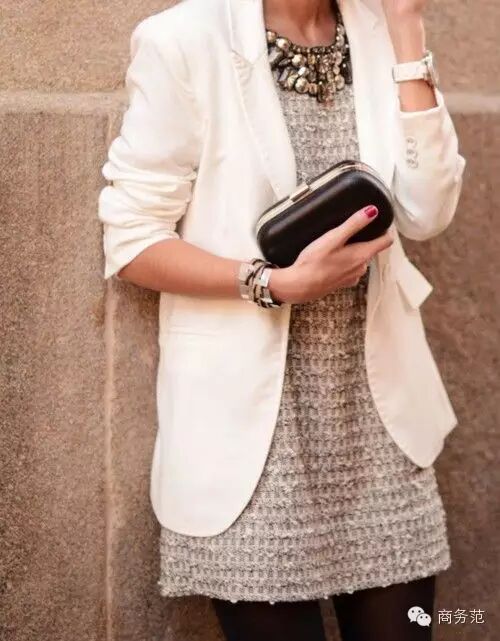 这里指的小西装外套可以随意一些,毕竟不是穿套装。比起风衣西装外套更加轻盈易带又不会过厚。