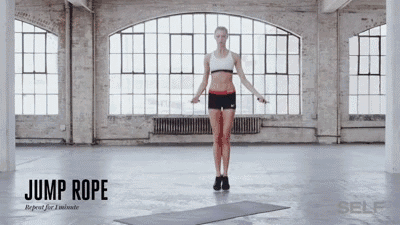 动作要点:跳绳时微屈膝盖,肩膀放松