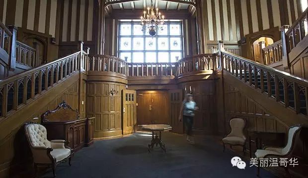 沿旋转楼梯登上八十七级,便可到达四楼的豪华大厅;从古堡往外望,可俯瞰维多利亚市的景色、一睹Juan de Fuca 海峡的明媚风光,以及远眺 OlympicMountains 的雪山胜景。