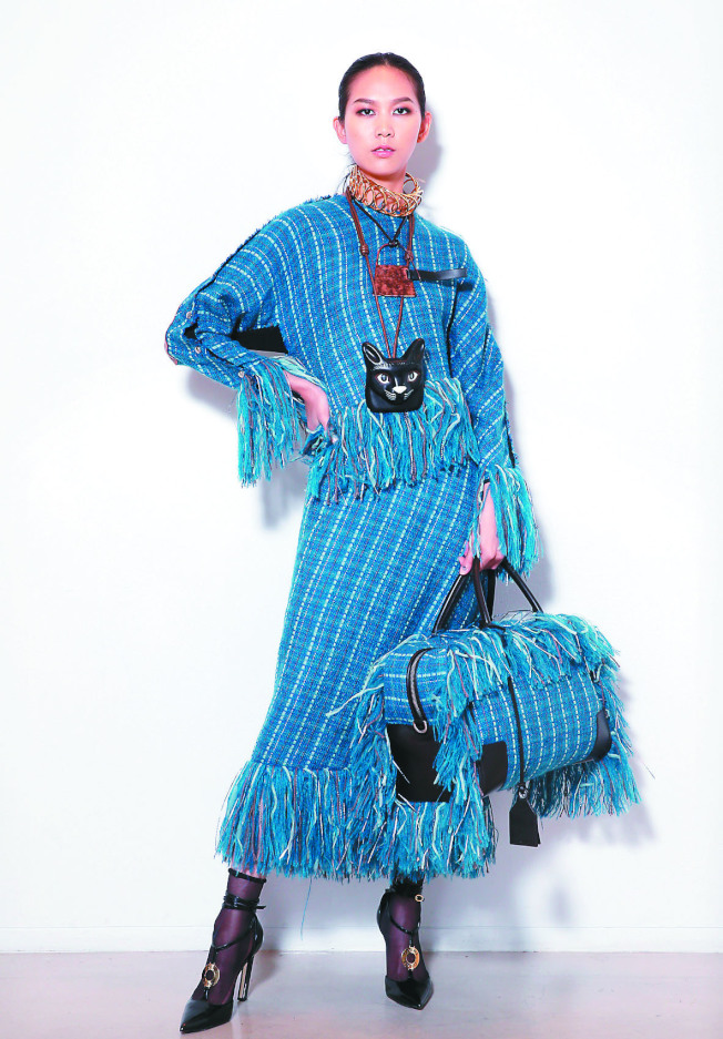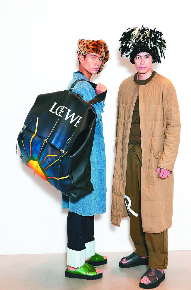 LOEWE品牌创意总监Jonathan Anderson采用流苏、马甲与金属环片等装饰的设计概念。(记者苏健忠/摄影)
