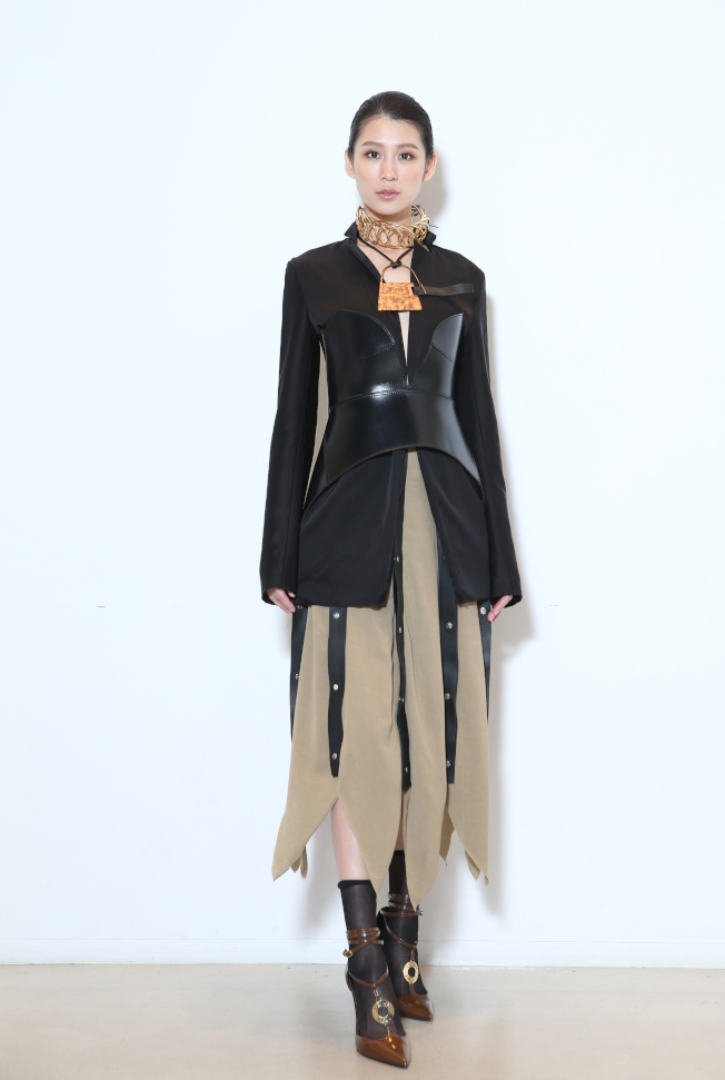 “Jonathan Anderson是天才!”是发表会上持续听到的赞叹,延续前几季跨越时空感的摩登实用主义,秋冬女装以洋装和裙款为主,运用有机与科技的对比材质,以及解构式的多重穿搭、不规则的绉褶、轻盈软呢,展现随性态度和女人味;细节中又见个性,如皮革缠绕的设计、或包款上金属钢片环饰等。