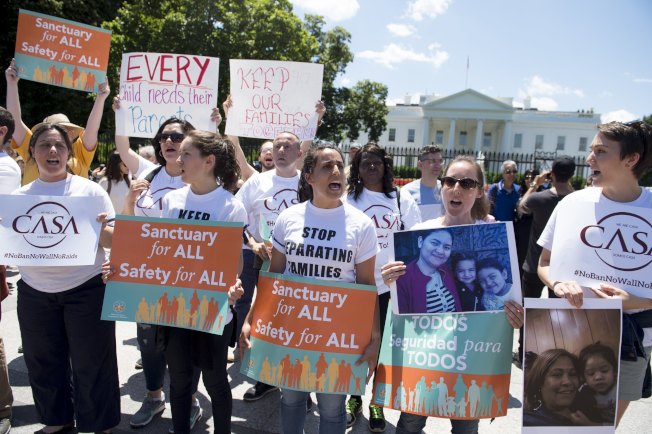 民众今年6月1日在白宫前示威,抗议川普政府重开遣返案。(Getty Images)