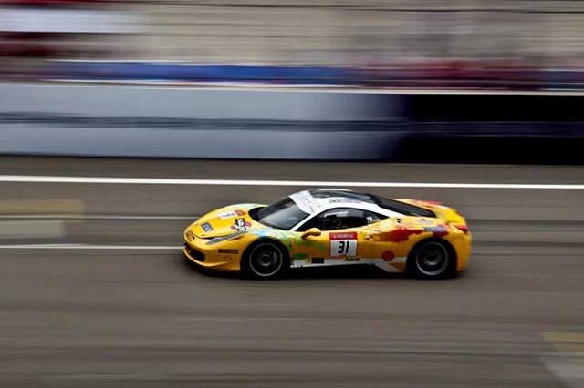 使用慢速快门拍摄时,越慢的快门速度会制造越夸张的动态虚化效果,有时甚至可以使用1/30秒甚至更低的快门速度,但需要一双稳固的“铁手”让相机稳定地跟随车一起运动,让主体赛车在取景框中的位置保持不变。