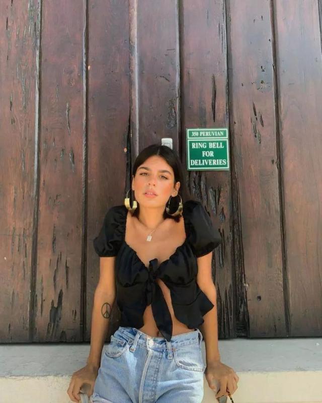 怕晒黑的姐妹,也可以把热裤换成老爹裤,再搭配一双老爹鞋,简直A爆了!帅气和性感并存,也不过如此了吧!