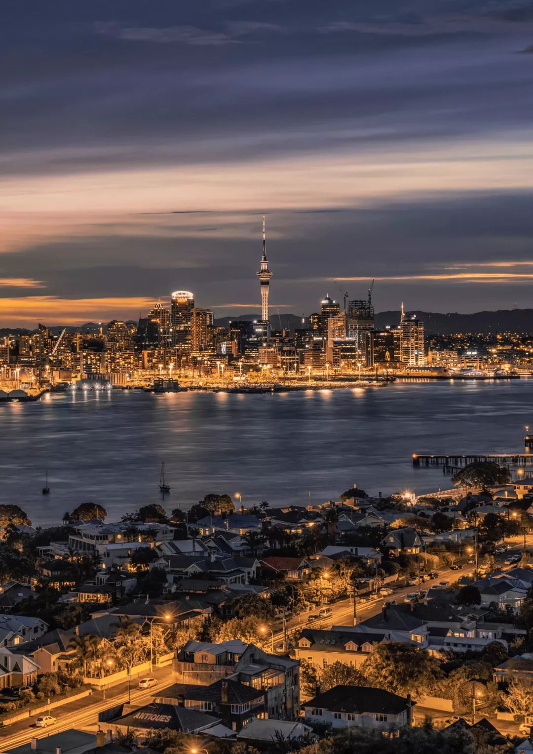 而随着人口和财富聚集 在重要的港口地区 一座座现代化都市 随之拔地而起 自然界丰厚的 水力和地热资源 则成为了关键的电力来源 为全国提供了3/4的电力 最大的城市奥克兰 高楼林立、灯火通明 车水马龙、川流不息 (人类发展指数是由联合国提出,综合生产、教育、医疗等多方面因素,评估国家经济社会发展水平的指标,下图为奥克兰,摄影师@suki)