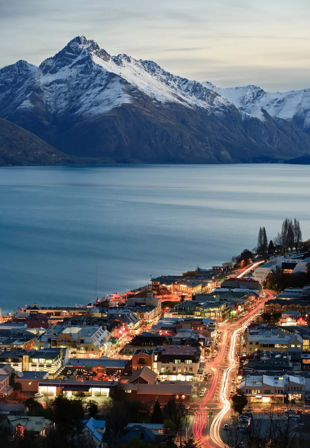 而坐落在其北岸的 是一座著名的旅游小镇 昆斯敦
