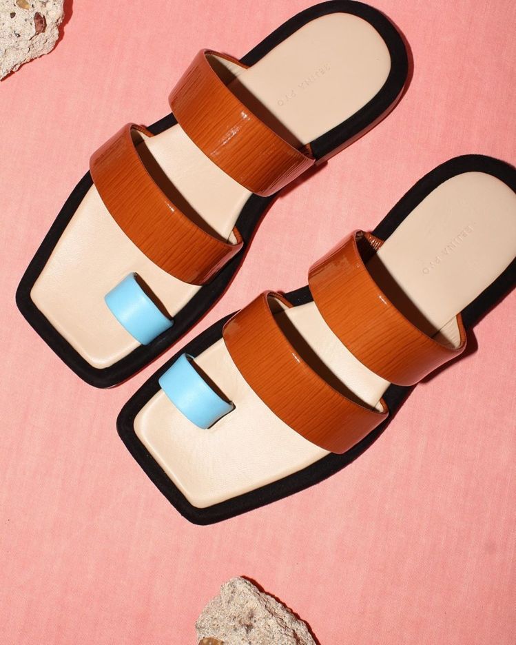 造型人字拖造型人字拖绝对会是今年夏天的大势,特别是今年各家品牌出的款式中,多少都有以“趾环”为亮点的设计。而Rejina Pyo就出了一双高跟人字拖,就将“人字”的设计放大,让交叉绑带的部分变成一片布,非常新颖。跟方头鞋一样也是套上即可出门的款式,跟方头凉鞋相比之下多了一点随兴感,俐落的剪裁也让人联想到都市风格,也很适合喜欢走干练路线的人。