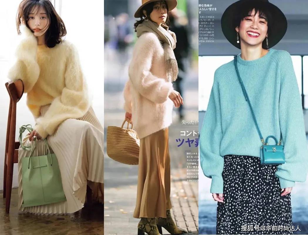 大廓形的毛衣要穿出优雅慵懒女人味,一定要搭配半裙,无论是高级感十足的百褶裙,温柔似水的缎面半裙,还是小清新的黑白碎花裙,和宽松的oversize大毛衣搭配在一起,都会显得既优雅舒适又慵懒,还有一种可爱的感觉。