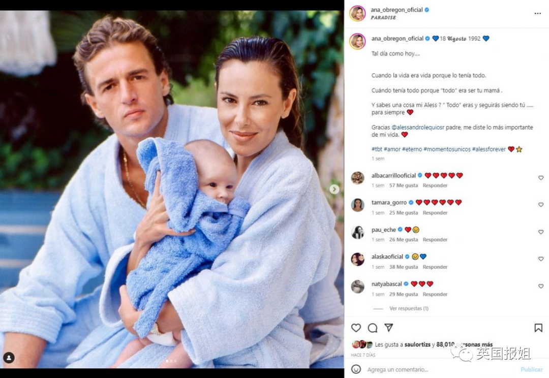 另一边,安娜和Lequio过上了风光的生活。他们没有结婚,但1992年高调宣布他们的儿子亚历克斯出生。这段时间安娜和儿子几乎占据了西班牙各大八卦杂志的版面。
