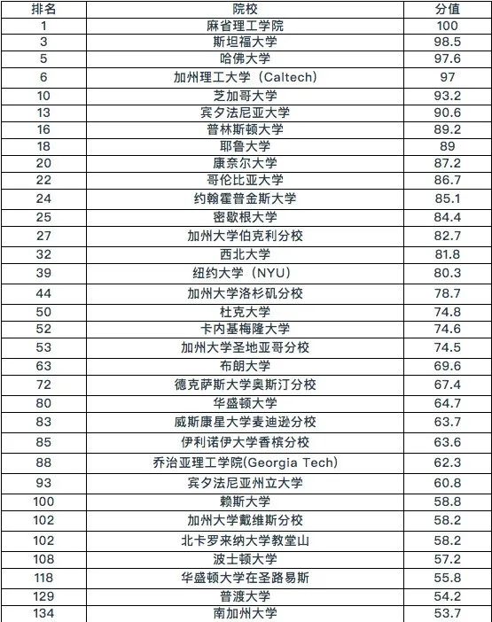 我们先来看看美国QS大学前300强的排名是怎样的: