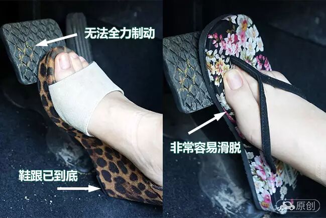 不少爱美的女性,都习惯穿高跟鞋或是凉拖鞋开车。但是这无疑是以一种“至生命于度外”的行为。因为在急踩刹车的情况下,高跟鞋会影响踩刹车的力度,不能实现全力制动,十分危险!而穿凉拖鞋很容易脱落,可能会卡到油门或者刹车踏板,如遇紧急情况,无法全力制动,阻碍刹车。