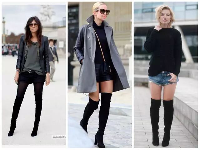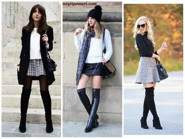 Tips2:上衣+短裙(短裤)+过膝长靴