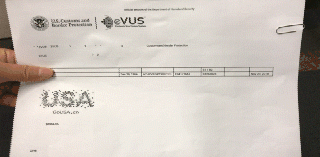 图为11月29日EVUS实施首日记者在机场拍摄的电子签确认单