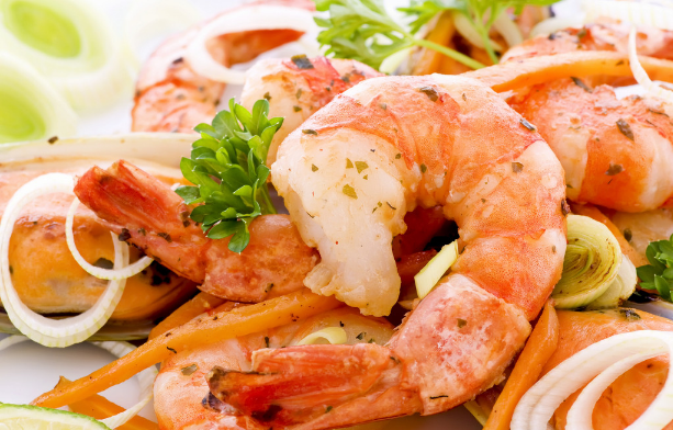虾仁Peeled Prawns;龙虾lobster;小龙虾crayfish;蟹crab;蟹足crab claws;小虾shrimp;对虾、大虾prawn;(烤)鱿鱼(toast)squid;海参sea cucumber;扇贝scallop;鲍鱼sea-ear abalone;小贝肉cockles;牡蛎oyster;鱼鳞scale;海蜇jellyfish;鳖、海龟turtle;蚬、蛤clam;鲅鱼culter;鲳鱼butterfish;虾籽shrimp egg;鲢鱼、银鲤鱼chub silver carp;黄花鱼yellow croaker
